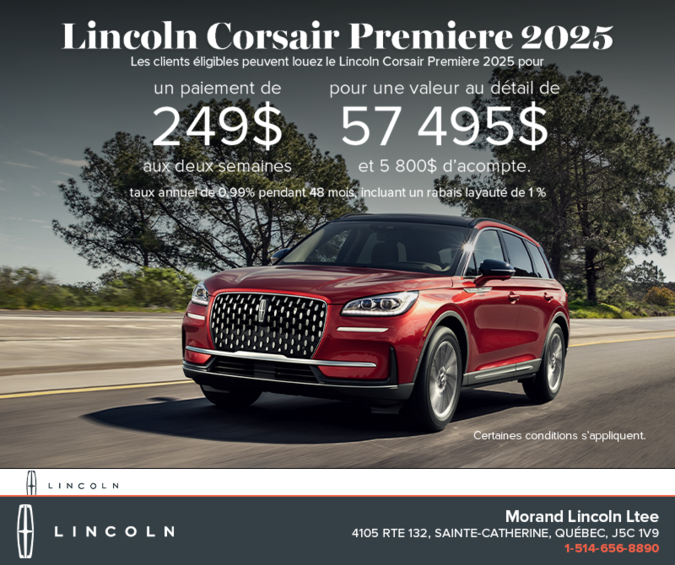 Les clients admissibles peuvent obtenir un boni d'hiver de 3 500$ sur les nouveaux modèles *Lincoln Corsair sélectionnés. .